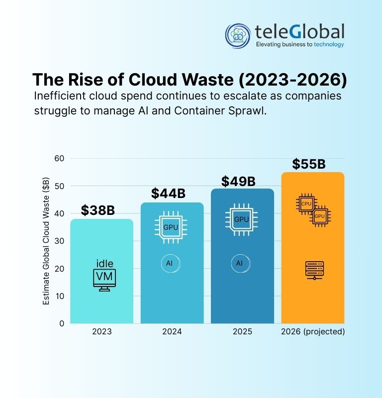 Cloud waste is high. Studies show more than 30% of cloud spend is wasted. This waste comes from unused machines, poor storage management, or lack of monitoring.