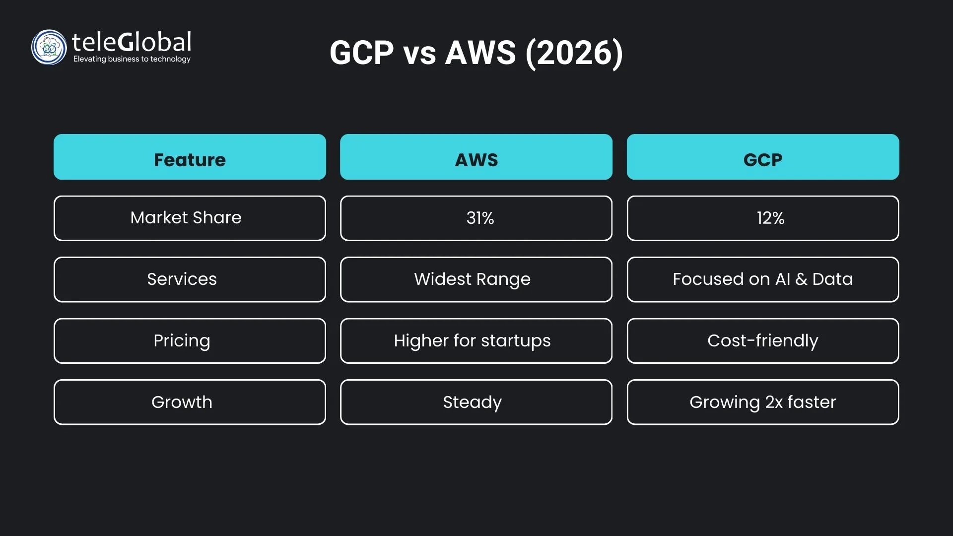 At TeleGlobal, we help clients uncover the full value of google cloud platform services. We provide expert google cloud platform consulting, optimize google cloud platform pricing, and guide teams through adoption. Our goal is simple, make cloud work for you.