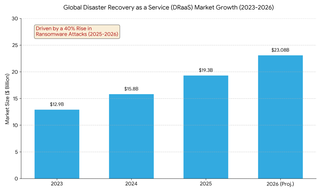 The global Disaster Recovery as a Service (DRaaS) market is projected to reach $23.08 billion this year, driven by a 40% rise in ransomware attacks targeting cloud infrastructure.